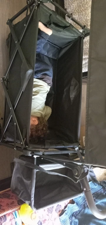 👉 Léger une fois plié, notre chariot de plage avec toit se glisse facilement dans un coffre de voiture ou derrière un siège.