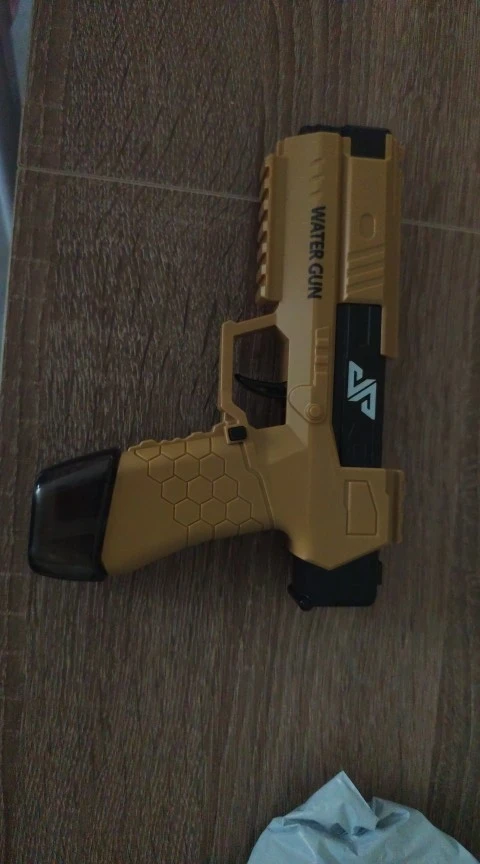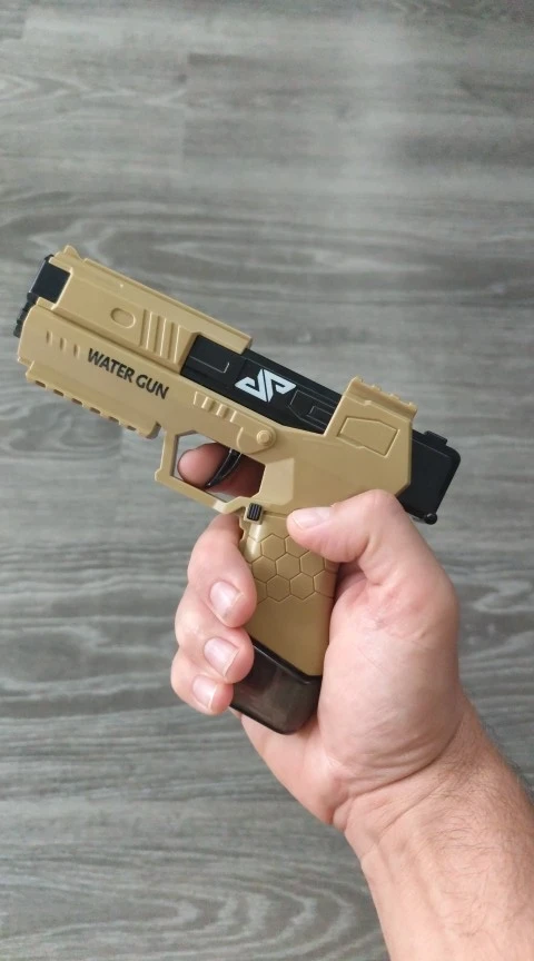 👉 Notre petit pistolet à eau est disponible en bleu, blanc, beige et noir et orange.