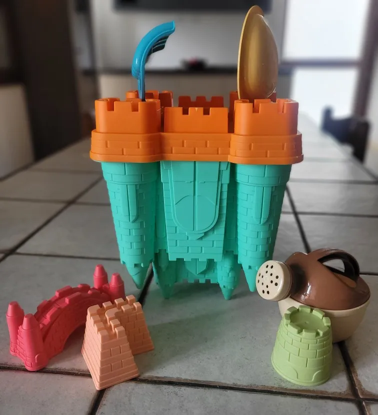 👉 Notre seau de plage château et ses accessoires sont fabriqués en plastique épais et résistant, sans BPA, conçus pour résister au sable, à l’eau salée et aux chocs répétés.